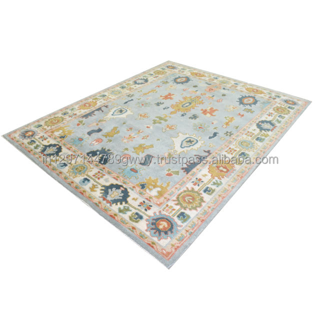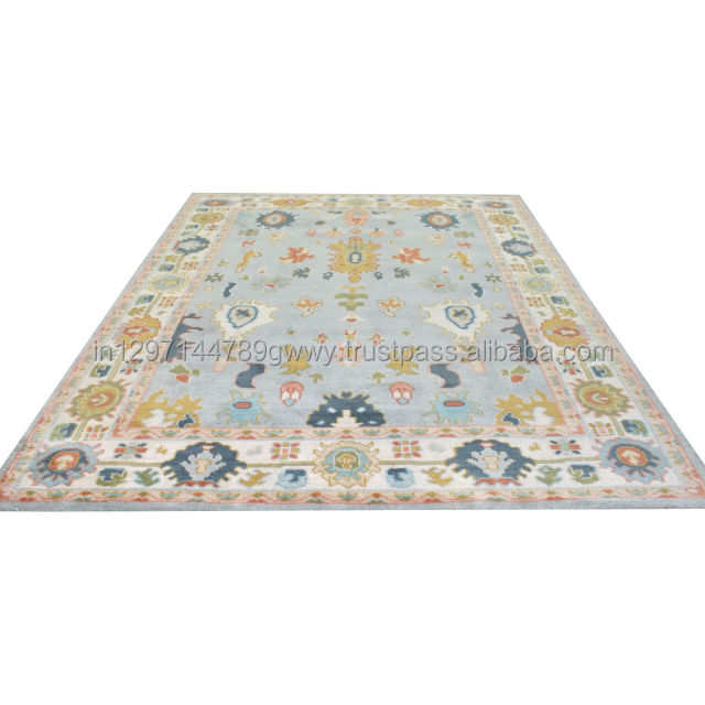 Alfombras Oushak hechas a mano en gris/azul cielo 8x10/9x12/10x14 Pila de corte anudada a mano turca lavable 10x14 pies