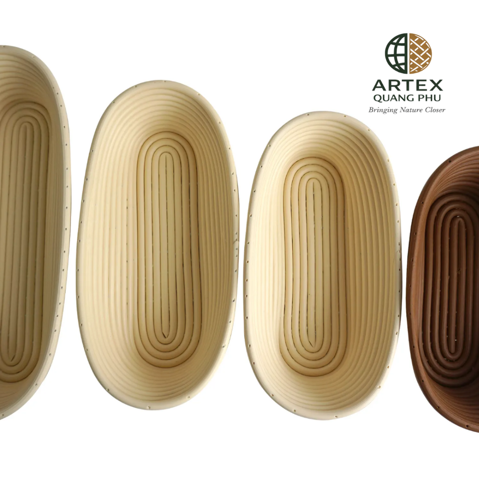 Juego de Bannetons Ovalados de Ratán Hechos a Mano para Fermentación de Pan, Naturales y Antiadherentes, Proveedor Vietnamita ARTEX QUANG PHU