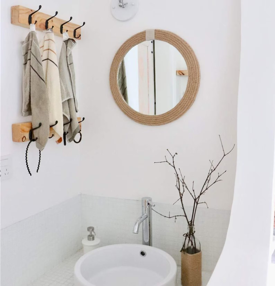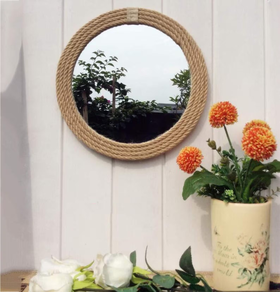Espejo de cuerda ovalada hecho a mano, decoración de pared costera rústica, espejos de forma ovalada Bohemia para baño, tocador, dormitorio