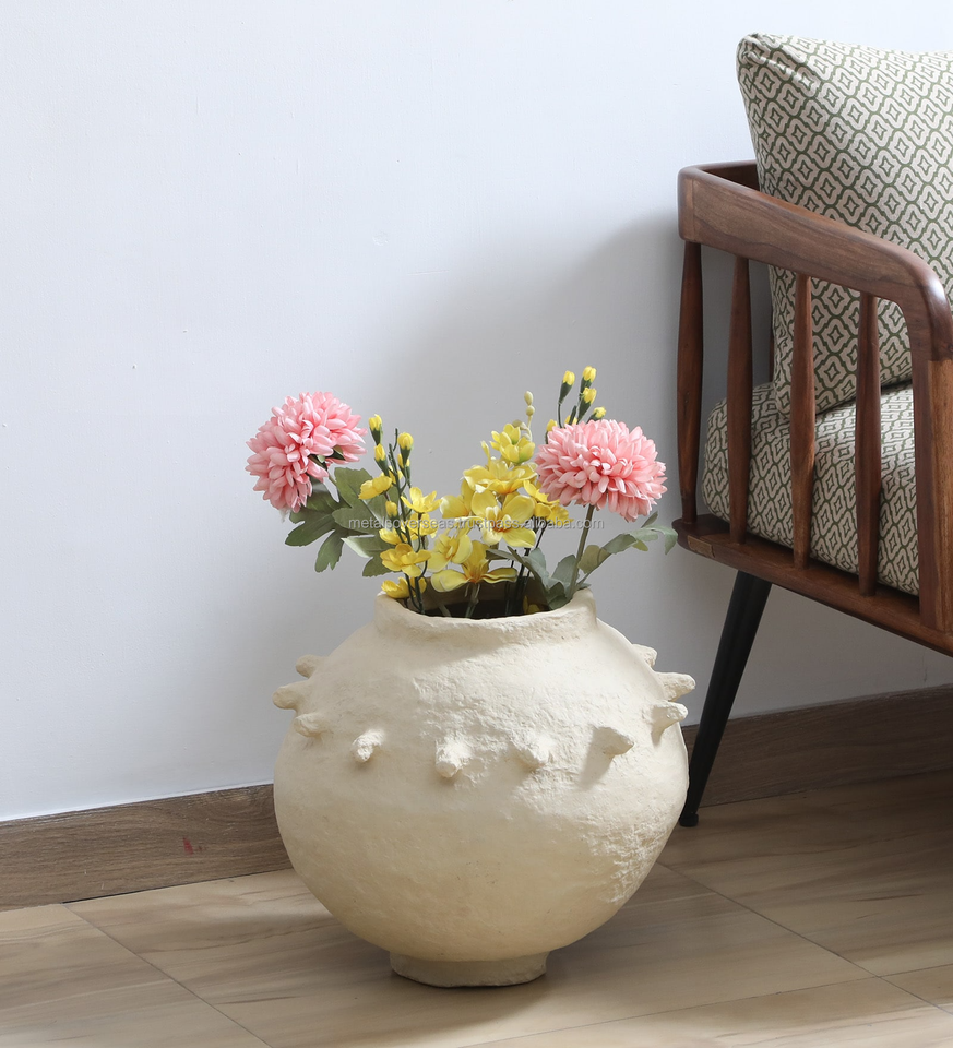 Jarrón decorativo Mache de papel hecho a mano diseño escultórico curvo neutro para decoración del hogar