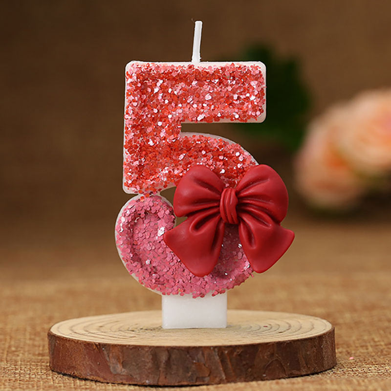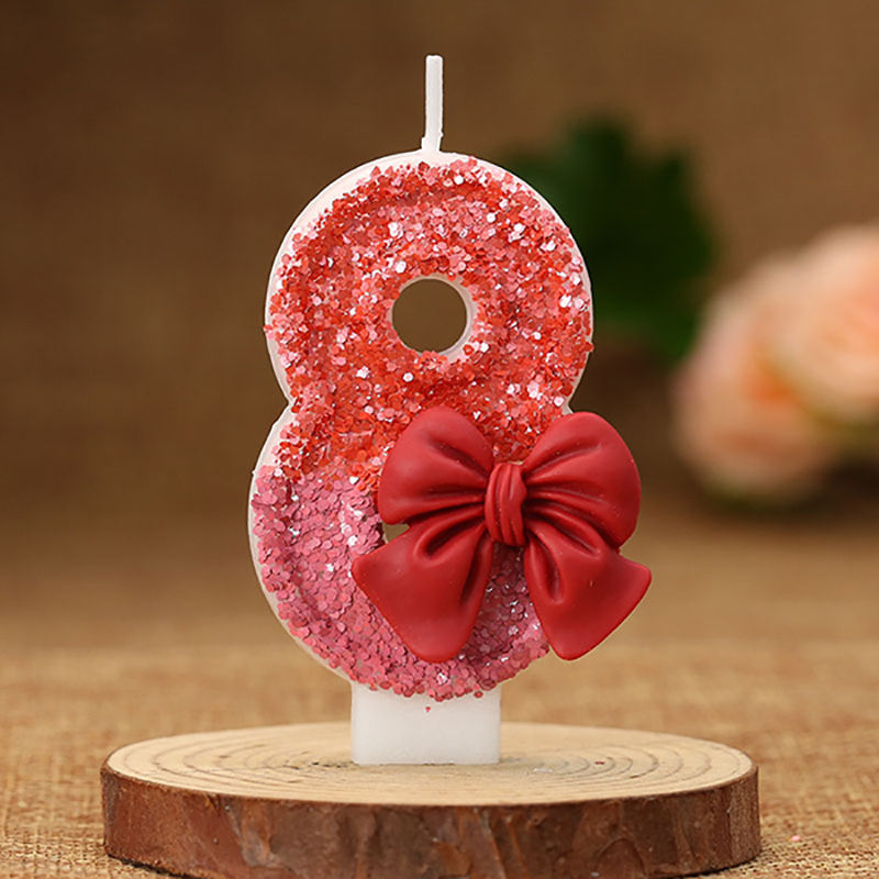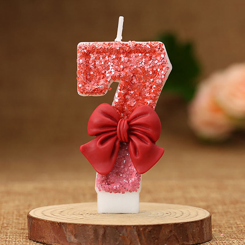 Velas de cumpleaños con forma de número de cera de parafina hechas a mano Mini Lazo Rojo estilo de lujo para Decoración de Pastel