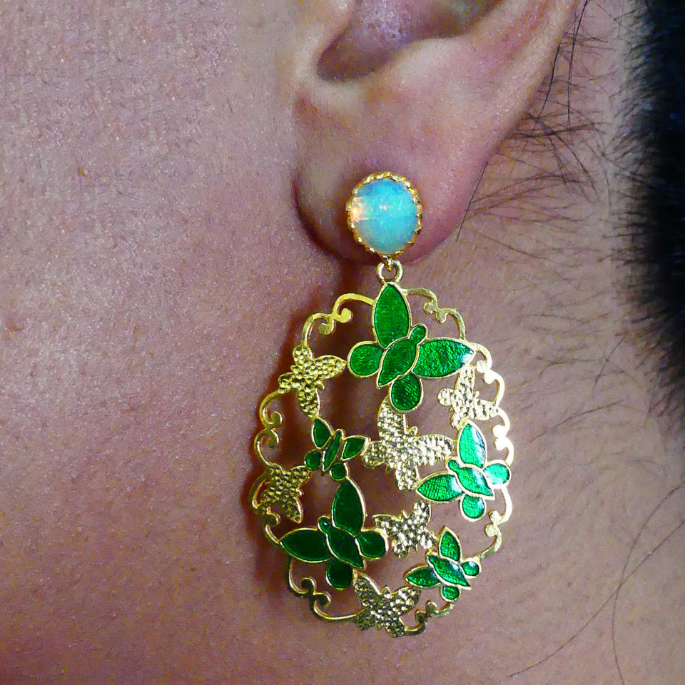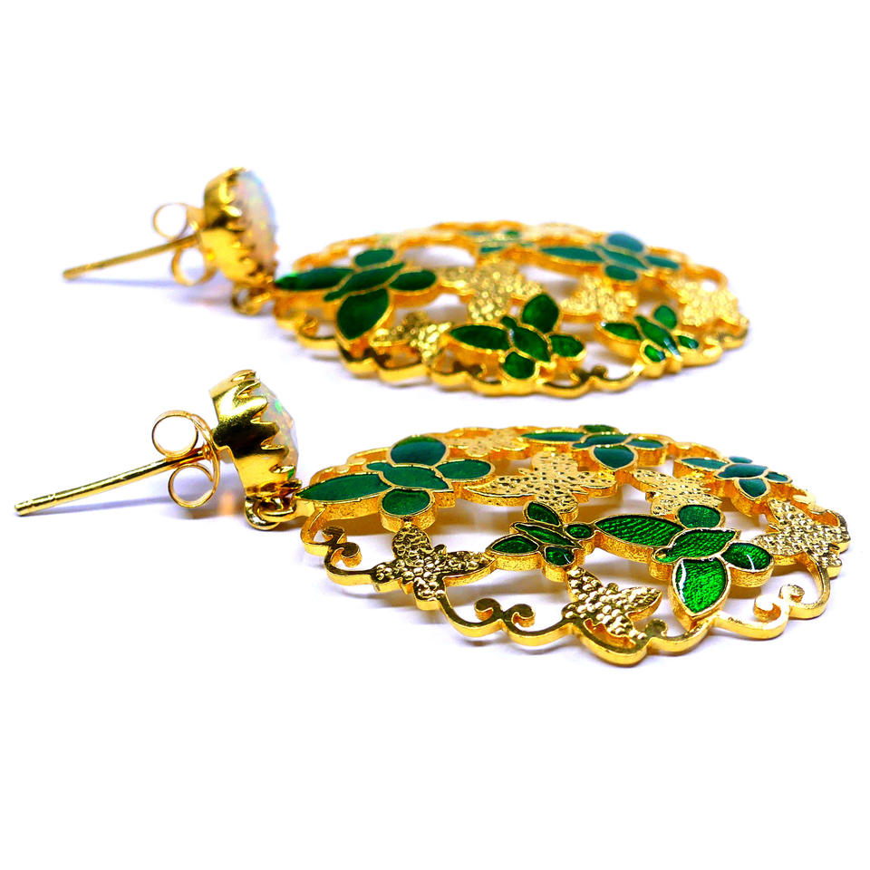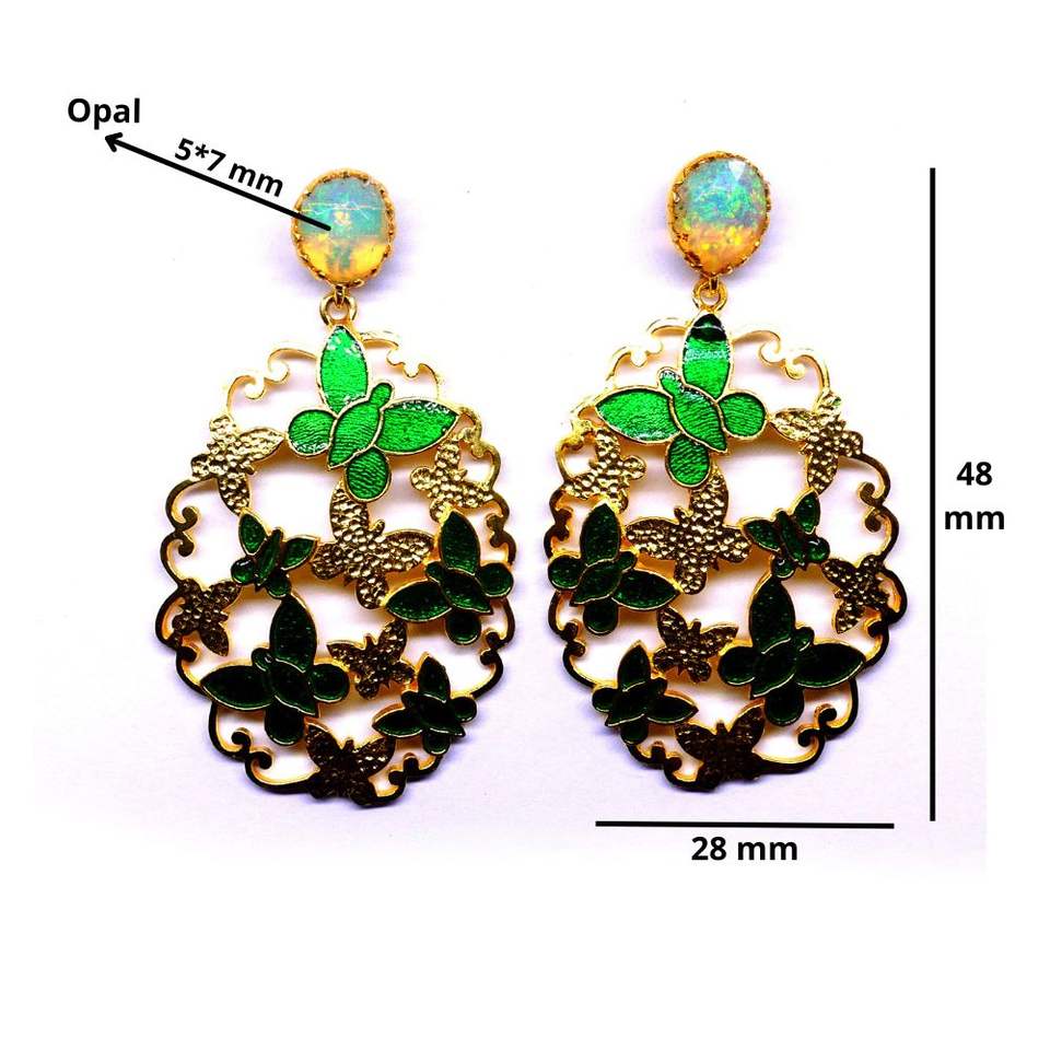 Pendientes de colección Mondreal para mujer hechos a mano con piedras preciosas de ópalo 925 de plata esterlina chapada en oro para fiesta