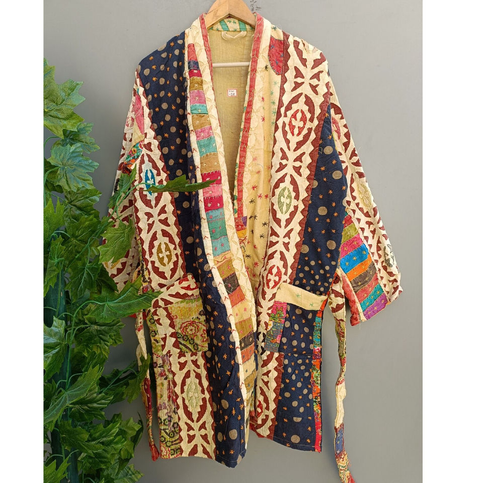 Chaquetas Kantha de algodón de retazos hechas a mano para mujer, abrigo de invierno acolchado Vintage largo, cierre de cinturón, tamaño libre, nuevo diseño de tendencia