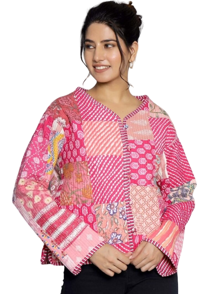 Chaqueta acolchada de algodón hecha a mano, abrigo corto de invierno de retazos con patrón de letras Reversible, regalo perfecto para ella