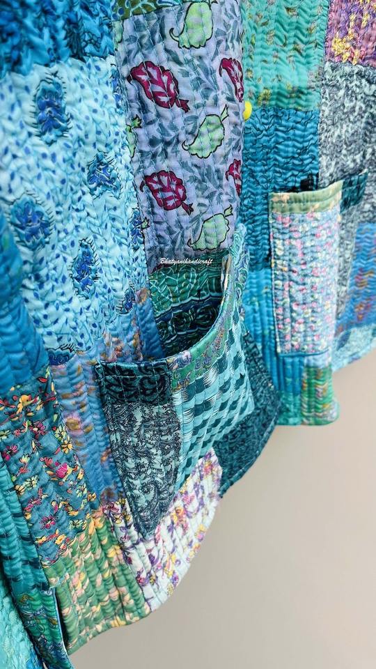 Chaqueta de retazos hecha a mano, chaqueta Sari de seda. Chaqueta acolchada, abrigo de invierno, Chaqueta corta, chaqueta unisex