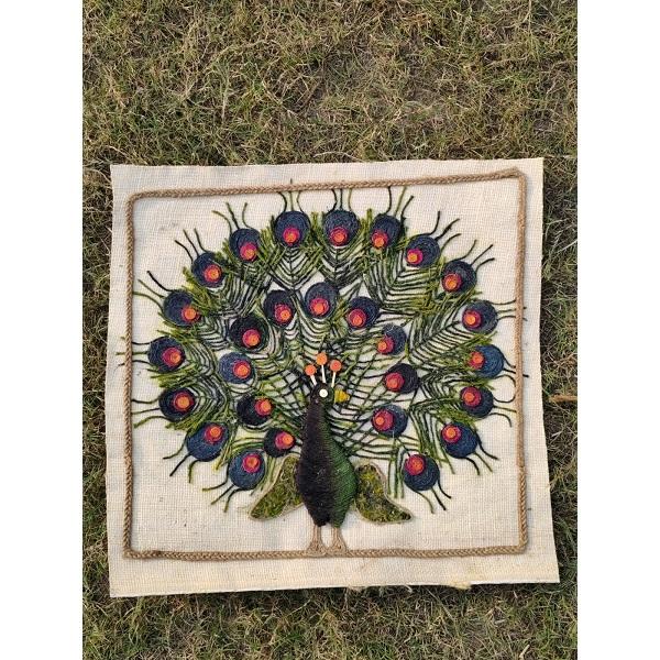 Cuadro de pared de pavo real hecho a mano con hilo de yute, arte decorativo ecológico, ideal para decoración rústica del hogar, sala de estar