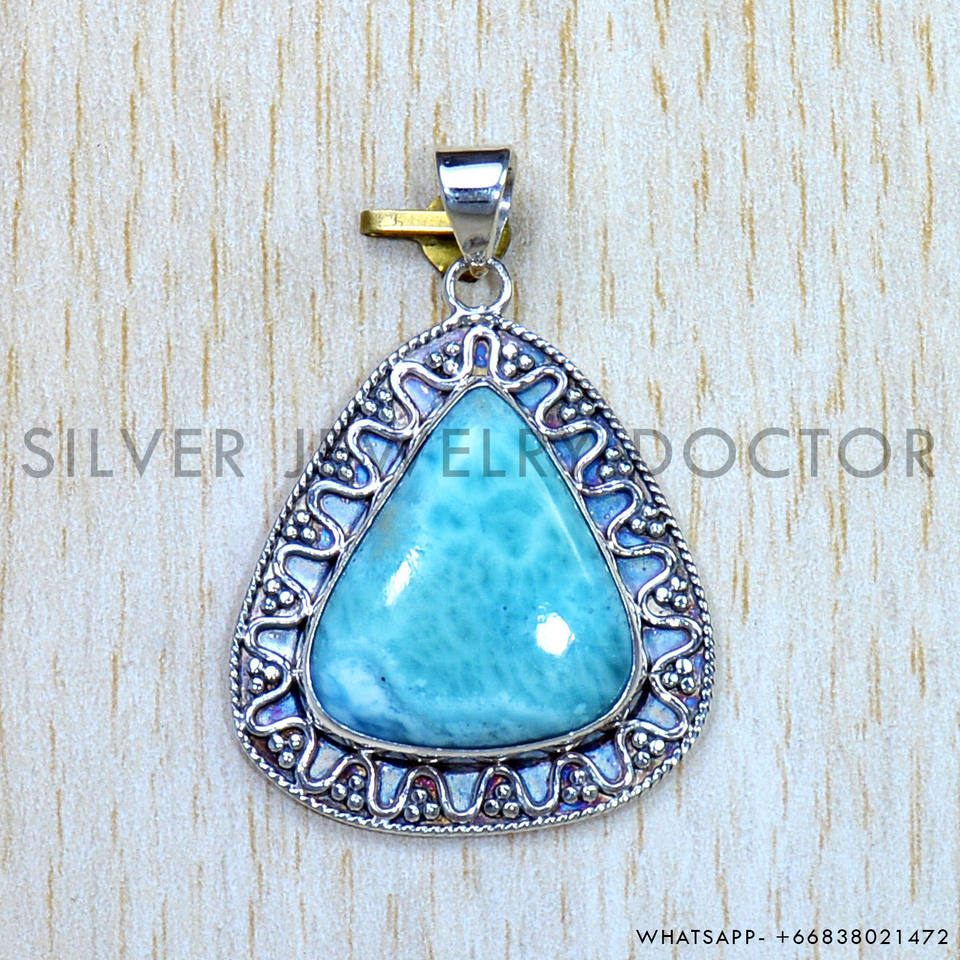 Bisel de corte de pera hecho a mano, piedra preciosa Larimar, colgante real de Plata de Ley 925, colgantes y dijes de plata al por mayor a granel
