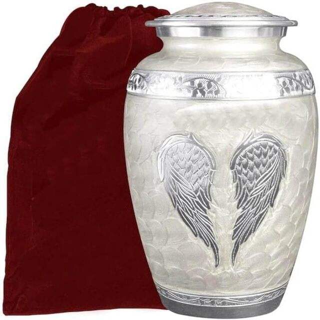 Urna Funeraria Artesanal con Diseño de Paloma para Cenizas Humanas, Urna Conmemorativa para Cremación, 10X5 pulgadas, Negro y Azul Cielo