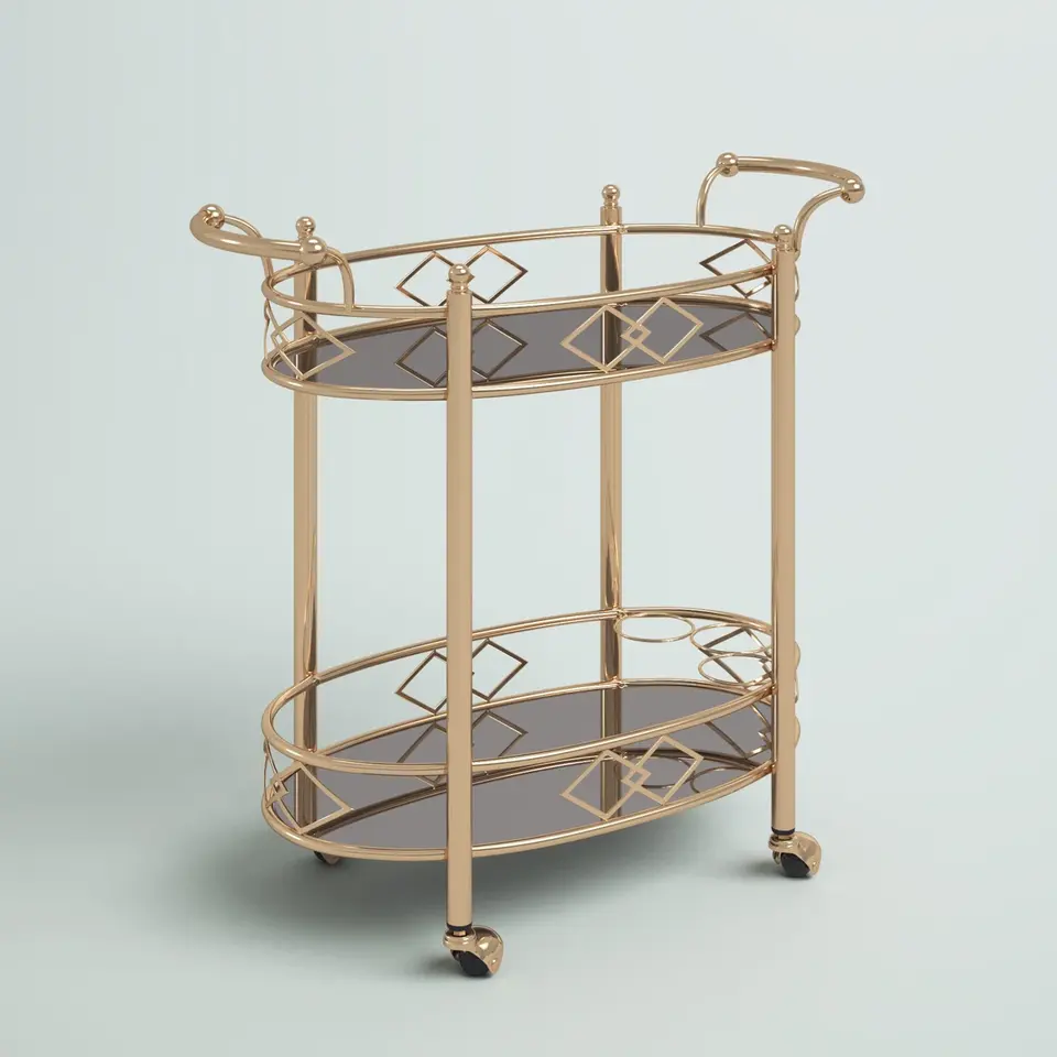 Carrito de Bar de Plástico Ecológico Hecho a Mano con Tapa de Vidrio, Diseño de Plantas, Carrito de Decoración de Lujo para Barra de Bar, Uso Seguro