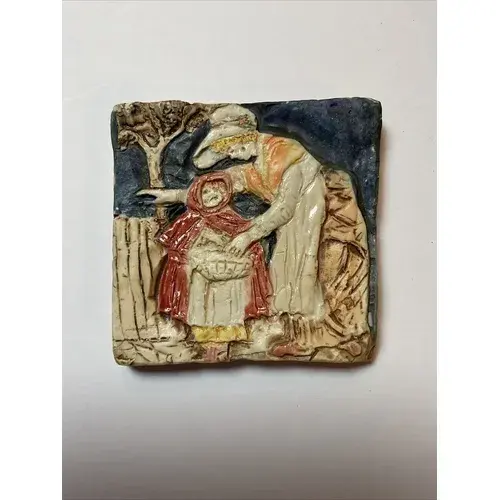 Azulejo de Arte de porcelana hecho a mano Backsplash Red Riding Hood Sculptured Trivet 4Ó Wall Accent