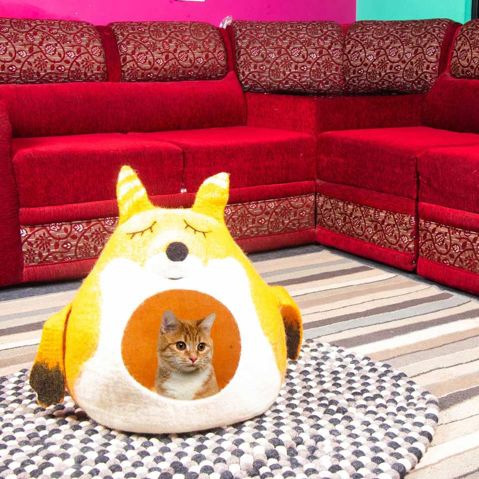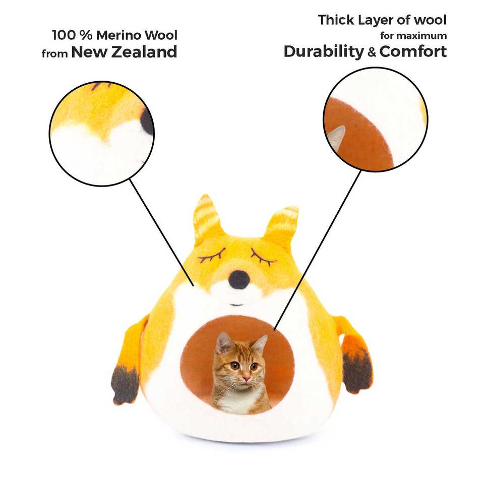 Cama para Gatos Hecha a Mano de Primera Calidad, Cueva 100% Fieltro de Lana Merino y Lana, Cama para Mascotas para Gatos y Gatitos