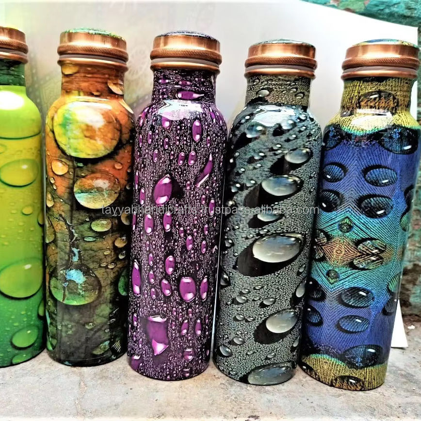 Botella de Agua de Cobre Premium Única para Impresión Personalizada, a Prueba de Fugas, para Viajes y Gimnasio, de la India