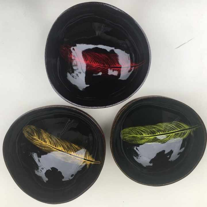 Product name:Shiny Red Lacquer Coconut Shell Bowl, Handicraft Bowl