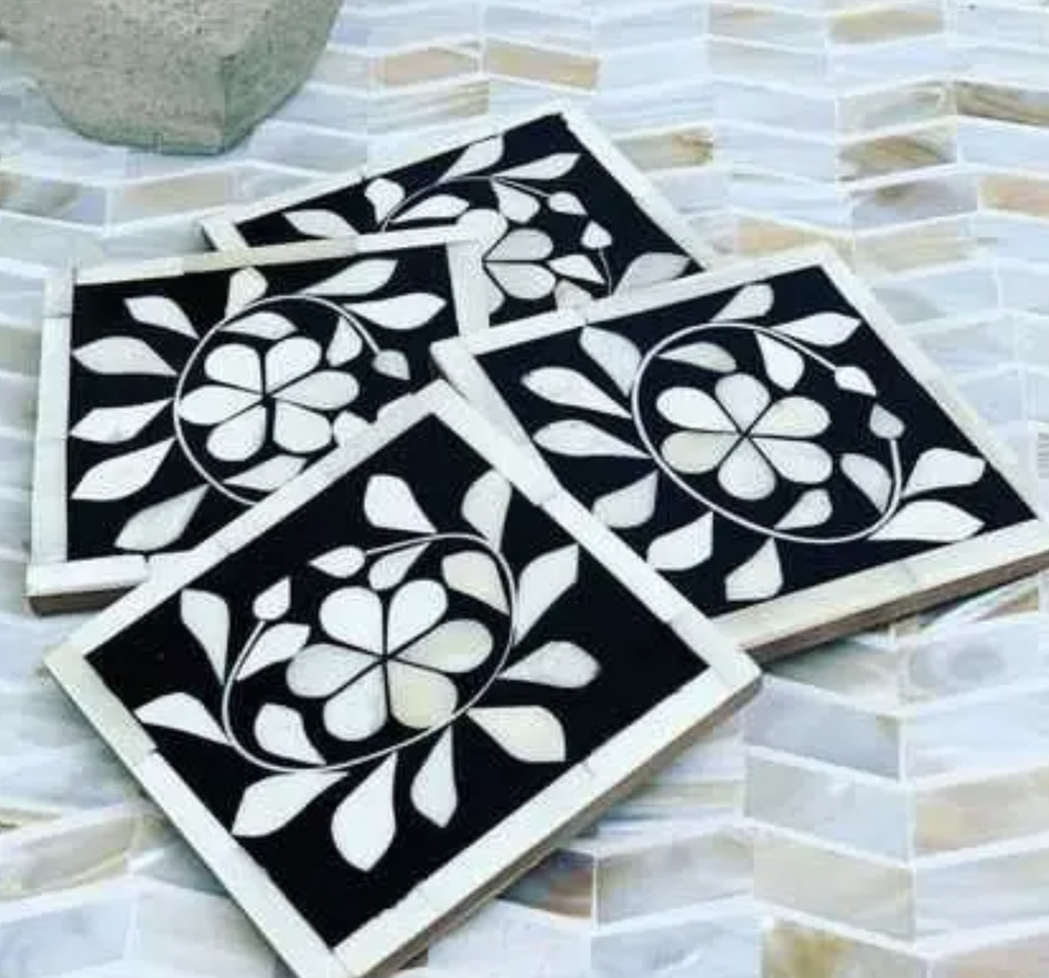 Posavasos de té con incrustaciones de hueso de calidad superior seguro para artículos de uso doméstico de artesanía india para posavasos de diseño de lujo hechos a mano
