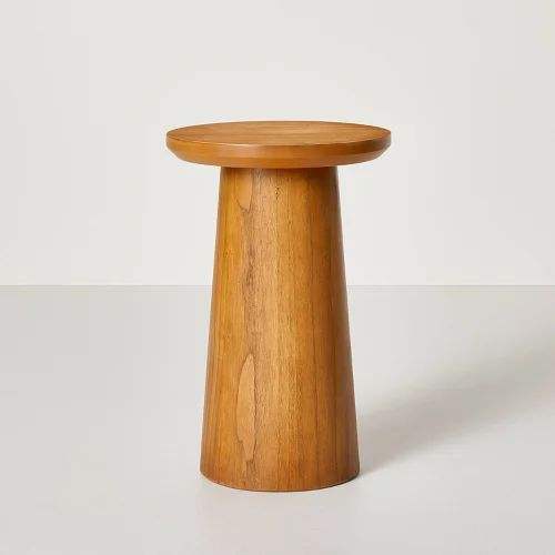 Mesa auxiliar de madera maciza Faustine de primera calidad hecha a mano estética con la ayuda de nuestra mesa auxiliar redonda inspirada en Scandi al por mayor