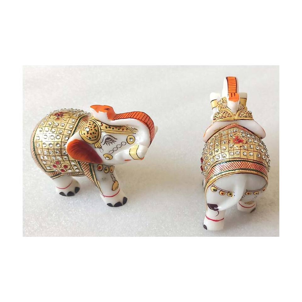 Product Name:Premium Quality Marble With Gold Painted Work Elephant Statue Wedding