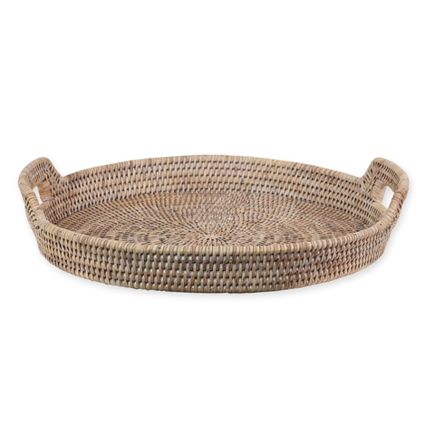 Bandeja de Servir de Ratán Premium Hecha a Mano con Asa de Madera Sólida, Mimbre Natural Ecológico para Té, Café, Comedor, Diseño Rústico