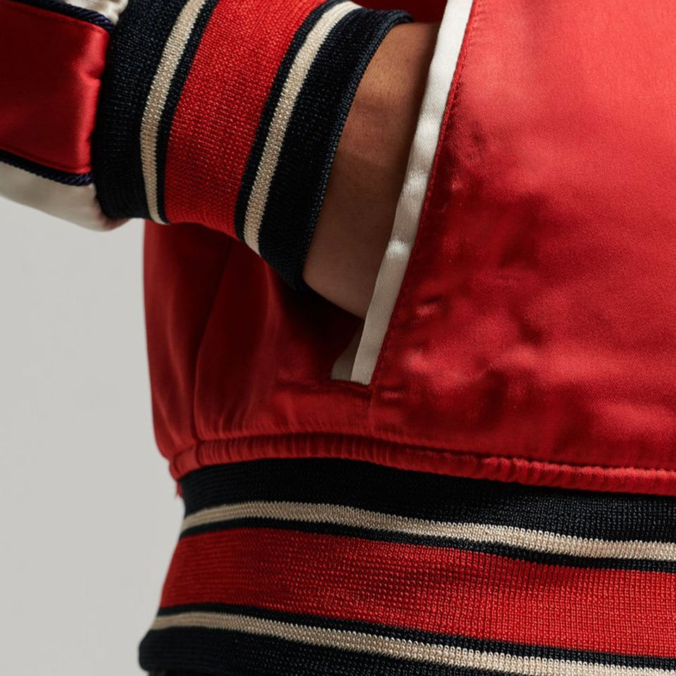 Chaqueta universitaria de satén hecha a mano de alta calidad con forro de nailon transpirable personalizada al por mayor