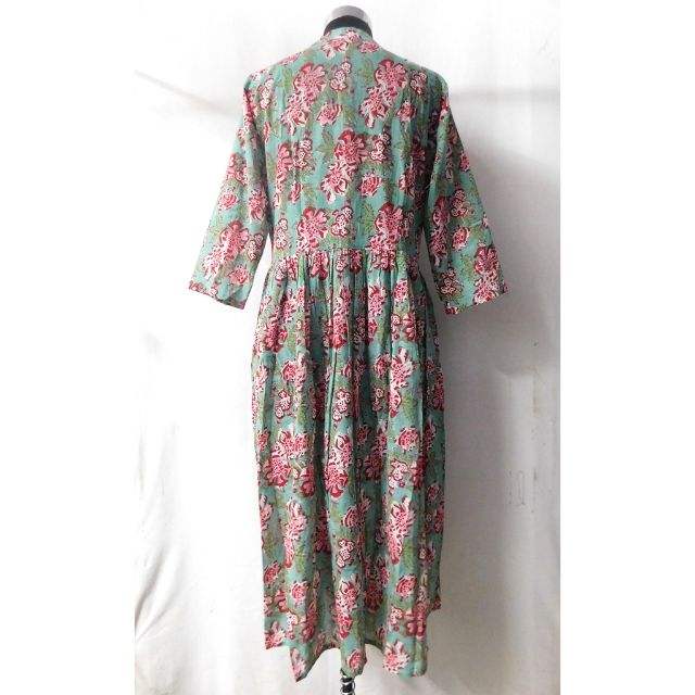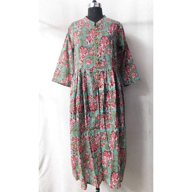 Hecho a mano impreso Boho Floral adornado estilo indio algodón hasta el suelo Kurti verano Casual fiesta desgaste Natural Hippie botón