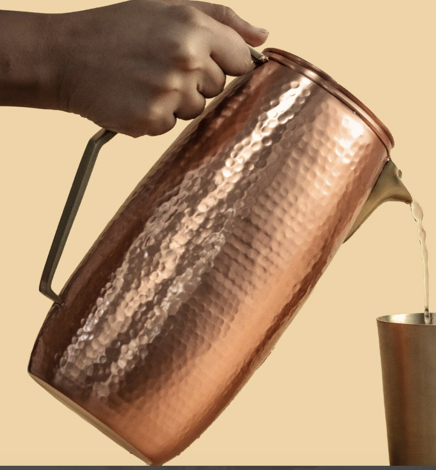 Jarra de cobre puro hecha a mano para mesa, artículos para bebidas ecológicos, jarra de cobre, jarra lujosa de nuevo diseño decorativo Premium