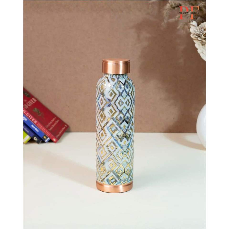 Juego de Botella de Agua de Cobre Puro Hecha a Mano con 2 Vasos - Recipiente de Cobre Ayurvédico a Prueba de Fugas - Vajilla con Diseño Grabado Antiguo