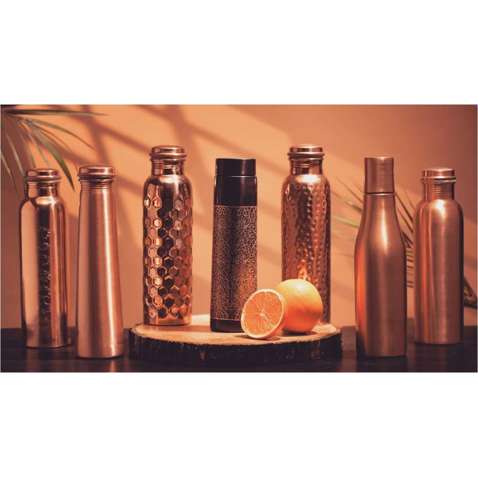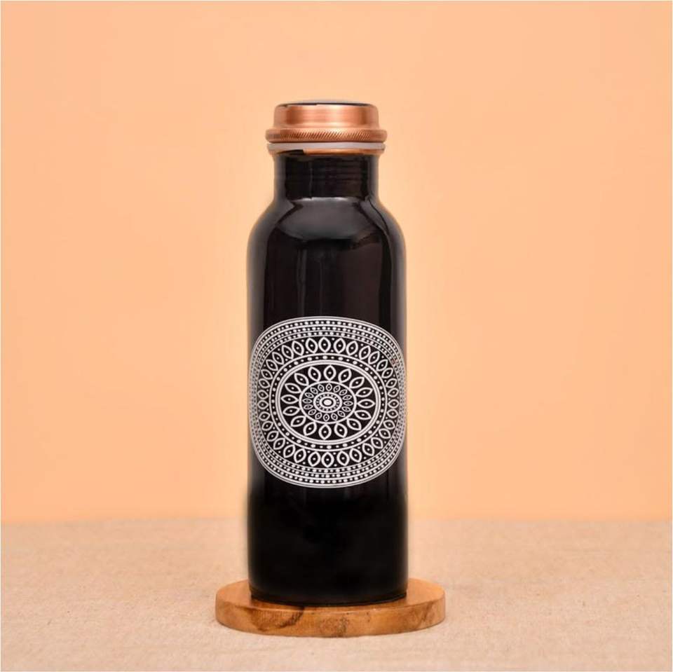 Juego de Botella de Agua de Cobre Puro Hecha a Mano con 2 Vasos | Recipiente de Cobre a Prueba de Fugas con Beneficios para la Salud Ayurvédica | Arte Paisley Azul de 1L