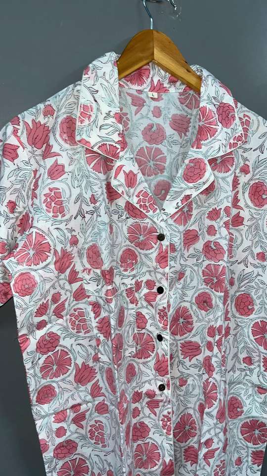 Conjunto de pijama de algodón puro hecho a mano con estampado floral para mujer Pantalones cortos de algodón con camisas para uso nocturno a precios baratos OEM