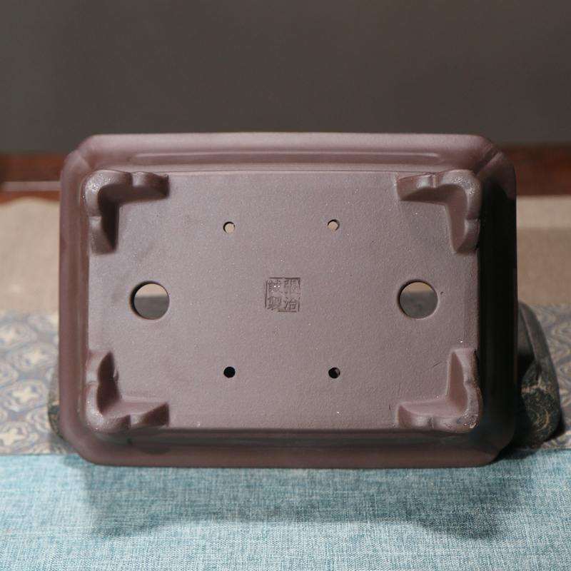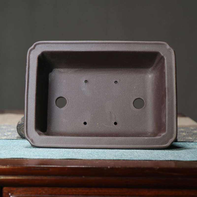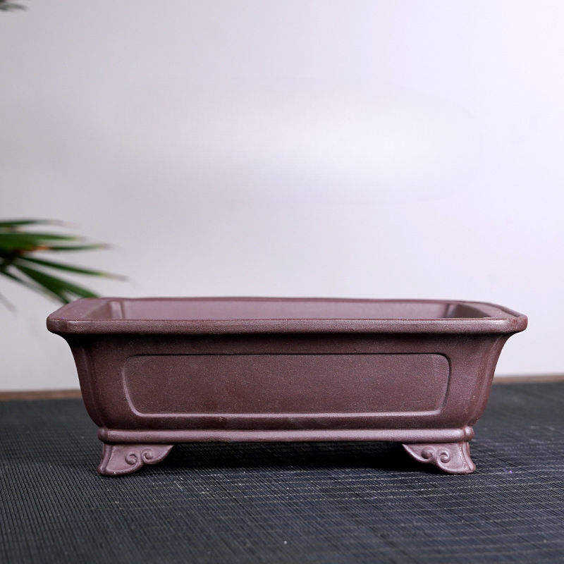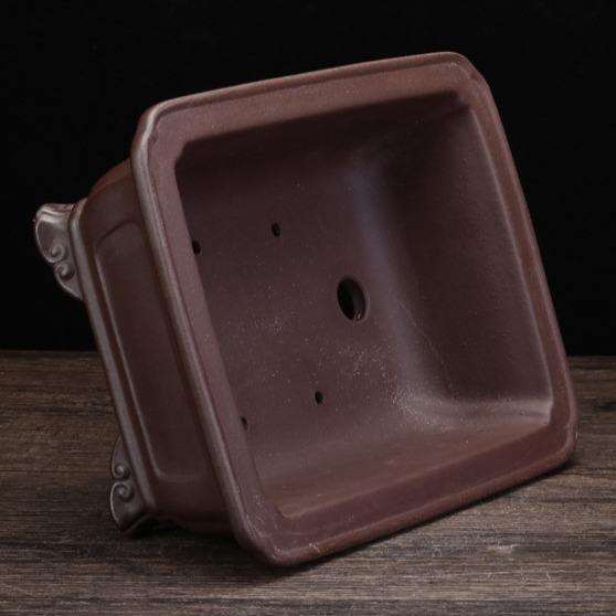 Maceta Rectangular Clásica Rústica de Arcilla Morada Hecha a Mano con Diseño Tallado a Mano, Orificio de Drenaje y Ecológica