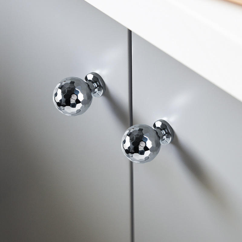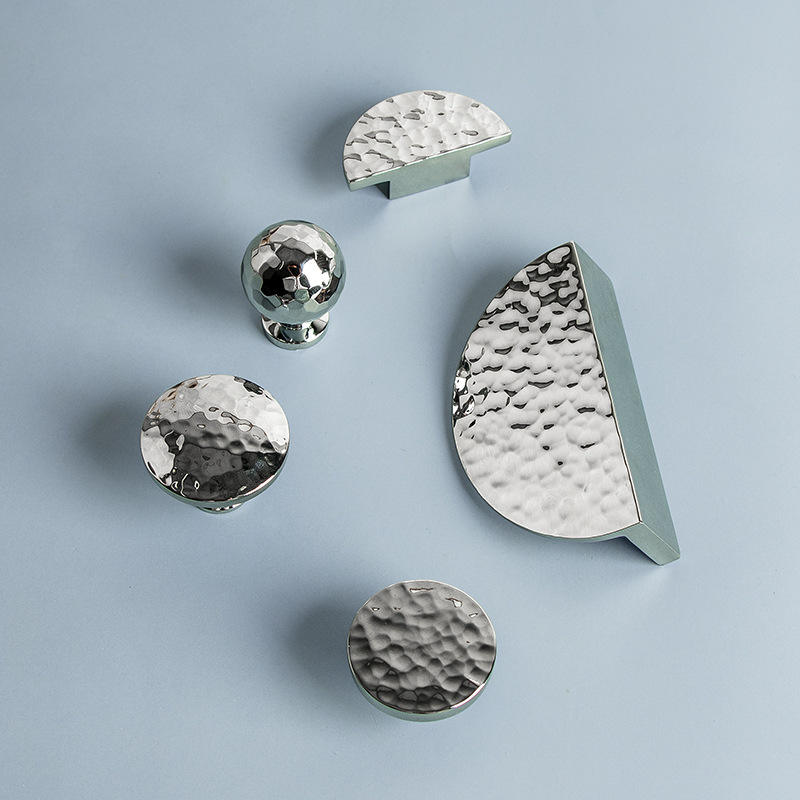Perillas de Muebles Hechas a Mano de Latón Macizo Cromado Plateado, con Superficie Rugosa Martillada, Semirredondas, Antioxidantes y Texturizadas