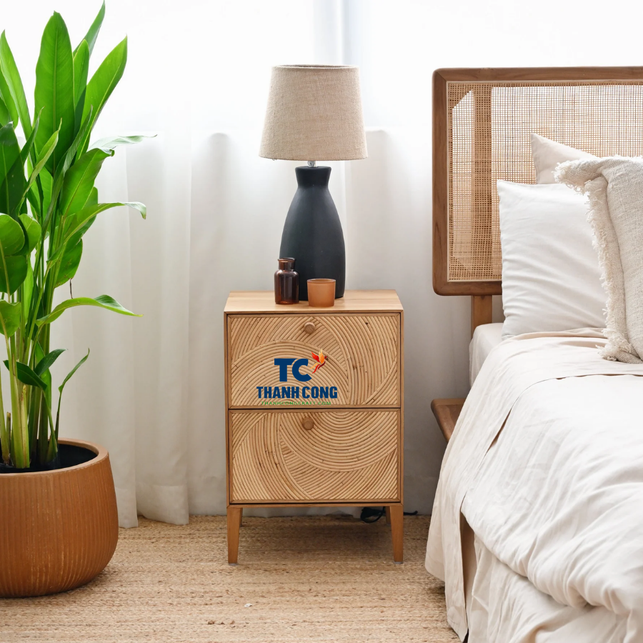 GABINETE LATERAL DE RATTAN hecho a mano con textura rústica, Ideal para interiores de vida orgánica y configuración de casa de huéspedes relajante