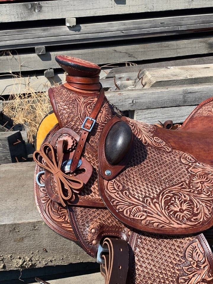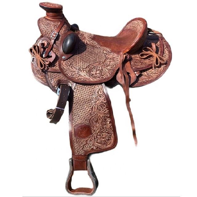 Equipo de Carreras de Caballos ingleses hecho a mano Durable Floral Western Cowboy Saddle Árbol de cuero genuino Tambor de madera Sillines de caballos indios