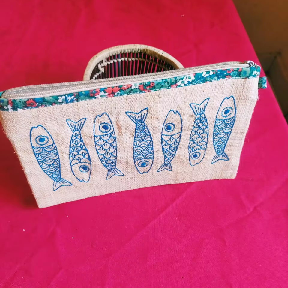 Bolso de Rafia Hecho a Mano, Estilo Urbano Simple, Uso Diario, Diseño Floral, Bolsillo Interior, Cierre de Tela, Ribete de Cuero