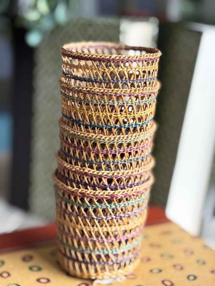 Juego de Portavelas y Floreros de Ratán Hechos a Mano con Marco de Hierro, Tejido de Caña Decorativo, Estilo Rústico Bohemio para Decoración Navideña del Hogar, Centro de Mesa