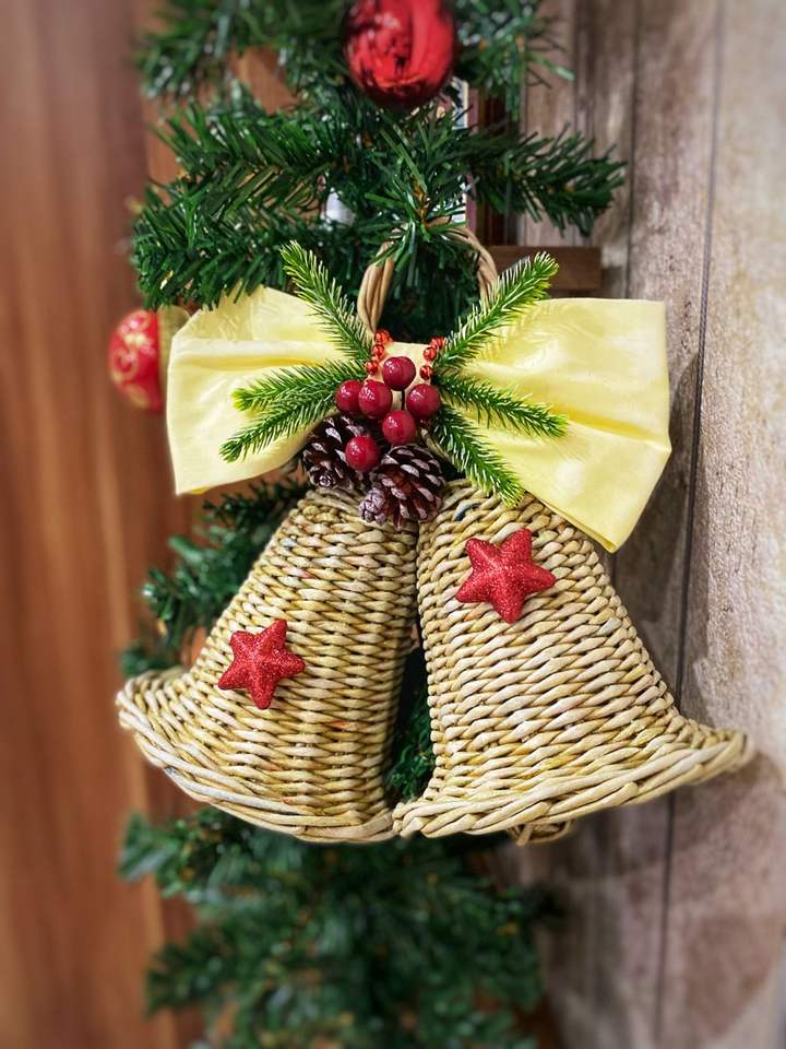 Campana Navideña de Ratán Hecha a Mano, Decoración Colgante para el Hogar y Decoración Navideña