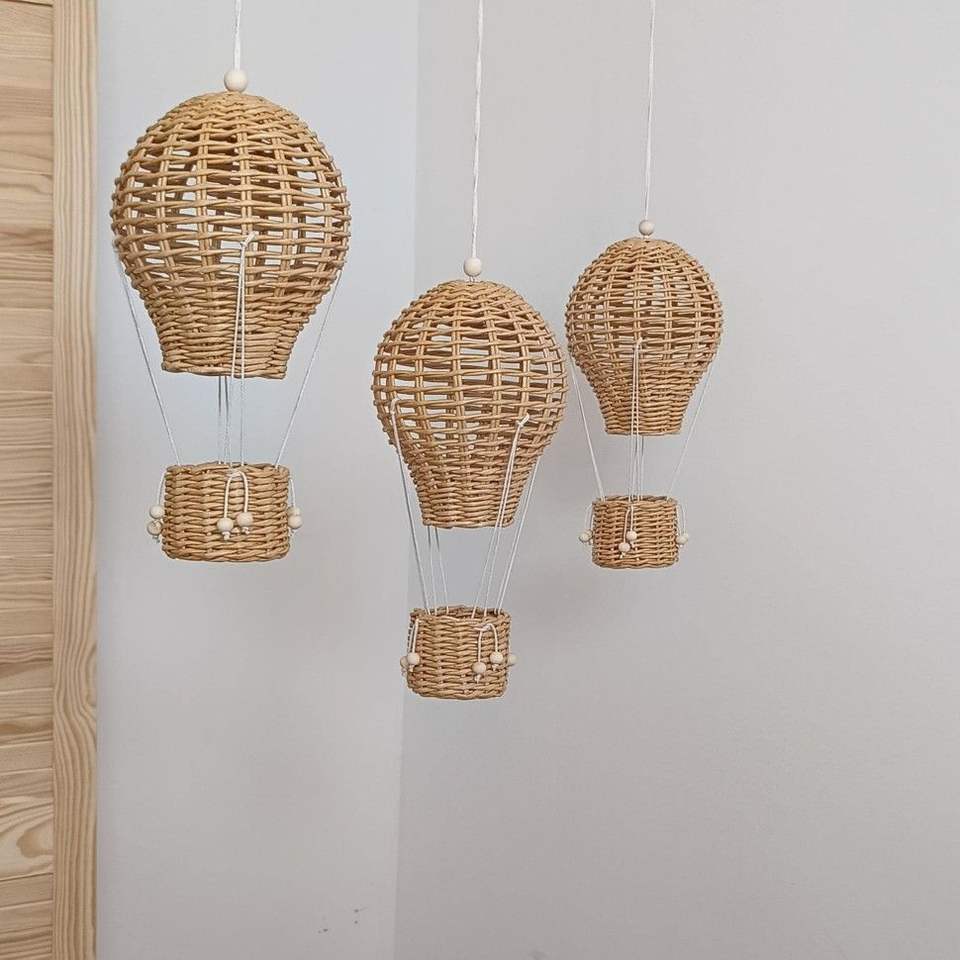 Decoración de Globo Aerostático de Ratán Hecho a Mano para Interiores, Habitación Infantil