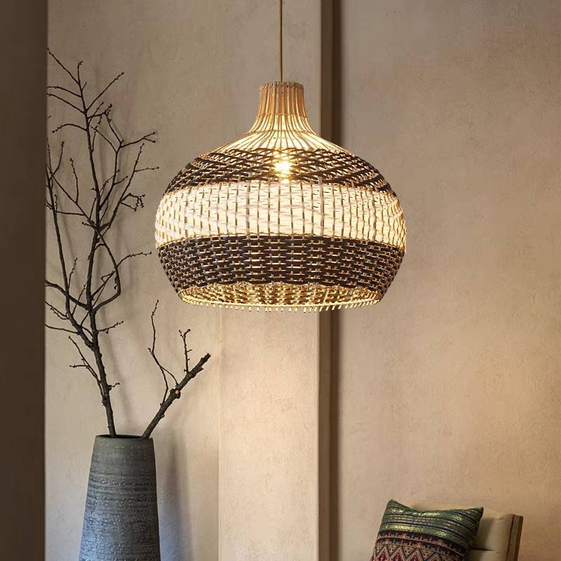 Lámpara colgante de ratán hecha a mano, redonda, con bombilla LED E27, para sala de estar, comedor, hoteles, casas de huéspedes, estilo nórdico
