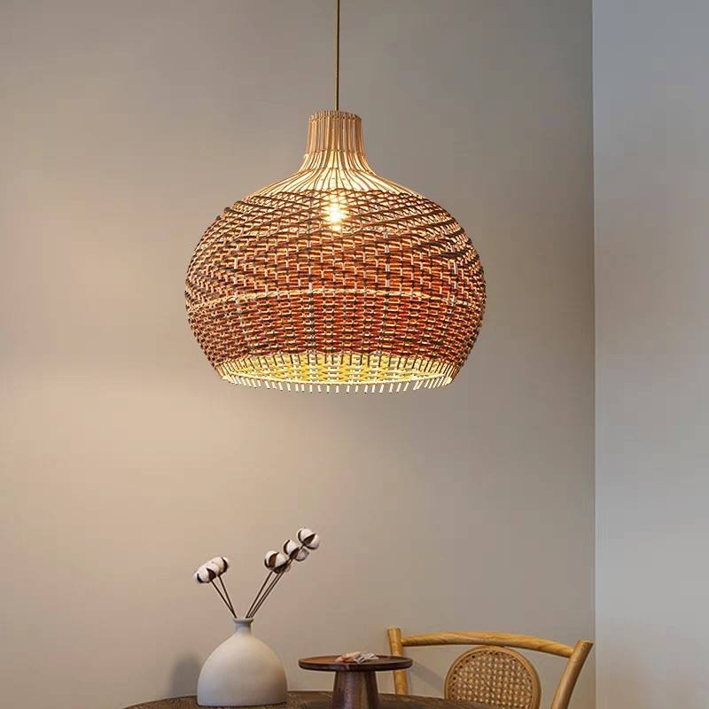 Lámpara colgante de ratán hecha a mano, bombilla Led E27 redonda para el hogar, sala de estar, dormitorio, cafetería, restaurante, accesorio de iluminación