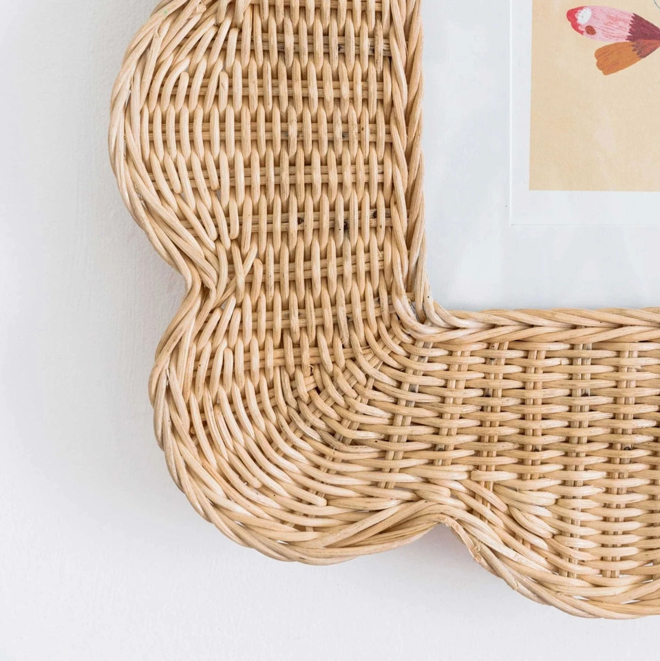 Marco de Fotos de Ratán Hecho a Mano con Borde Festoneado, Marco de Mimbre Natural para Decoración de Pared, Marco Tejido Estilo Boho para Decoración del Hogar