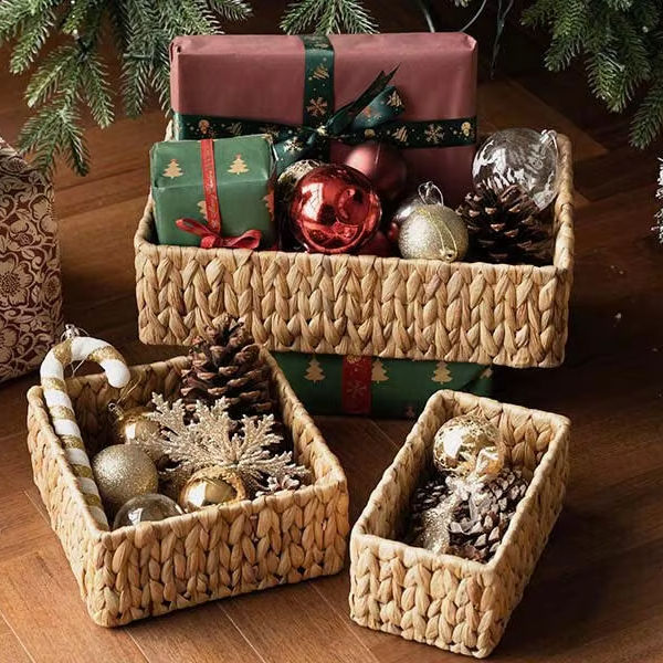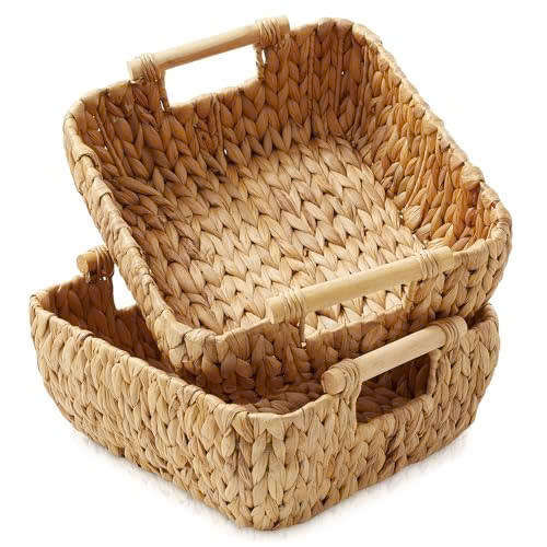 Bandeja de Servir de Ratán Hecha a Mano, Bandeja de Mimbre Tejida Natural, Cesta Ecológica para Servir Alimentos con Asas para Cocina, Hogar, Hotel