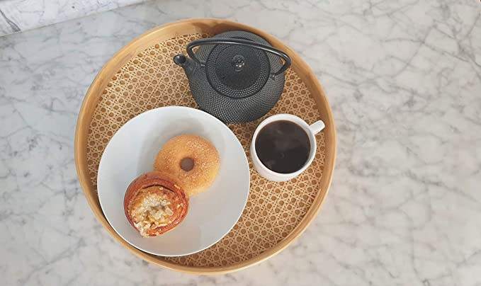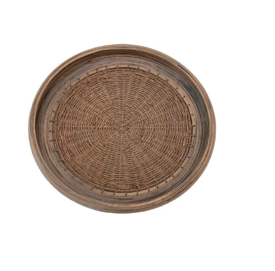 Bandeja de servicio de ratán hecha a mano en color marrón con marco de madera perfecta para bandeja de servicio de hogar y cocina