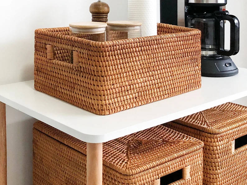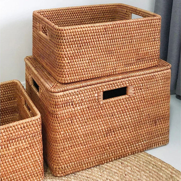 Cesta de mimbre hecha a mano para almacenamiento, contenedor para decoración del hogar