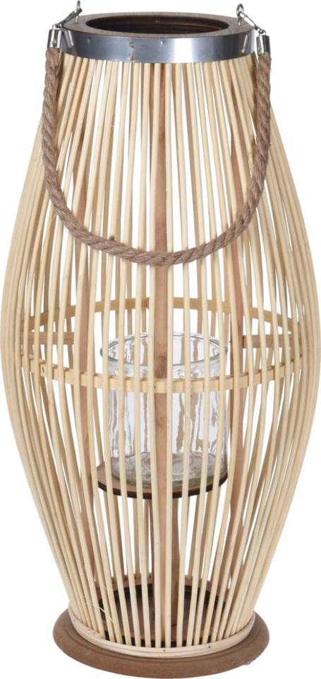 Linterna cónica de ratán hecha a mano con mango e inserción de vidrio, candelabro Natural con soporte y sombra de vidrio
