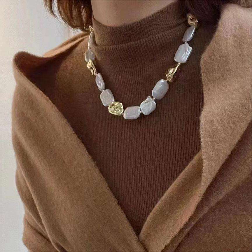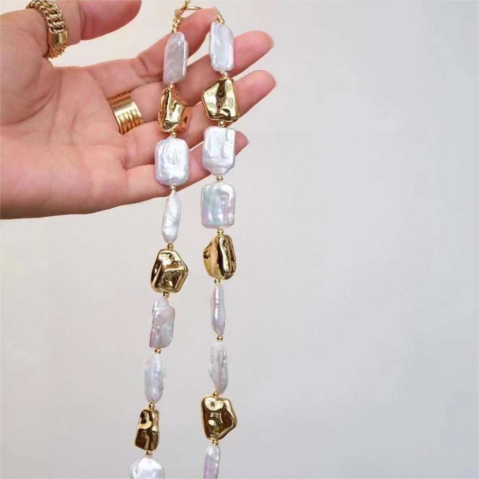 Collar de Perlas Barrocas de Agua Dulce Rectangular Hecho a Mano con Cierre de Luz Fuerte, Recomendado para la Creación de Joyería DIY