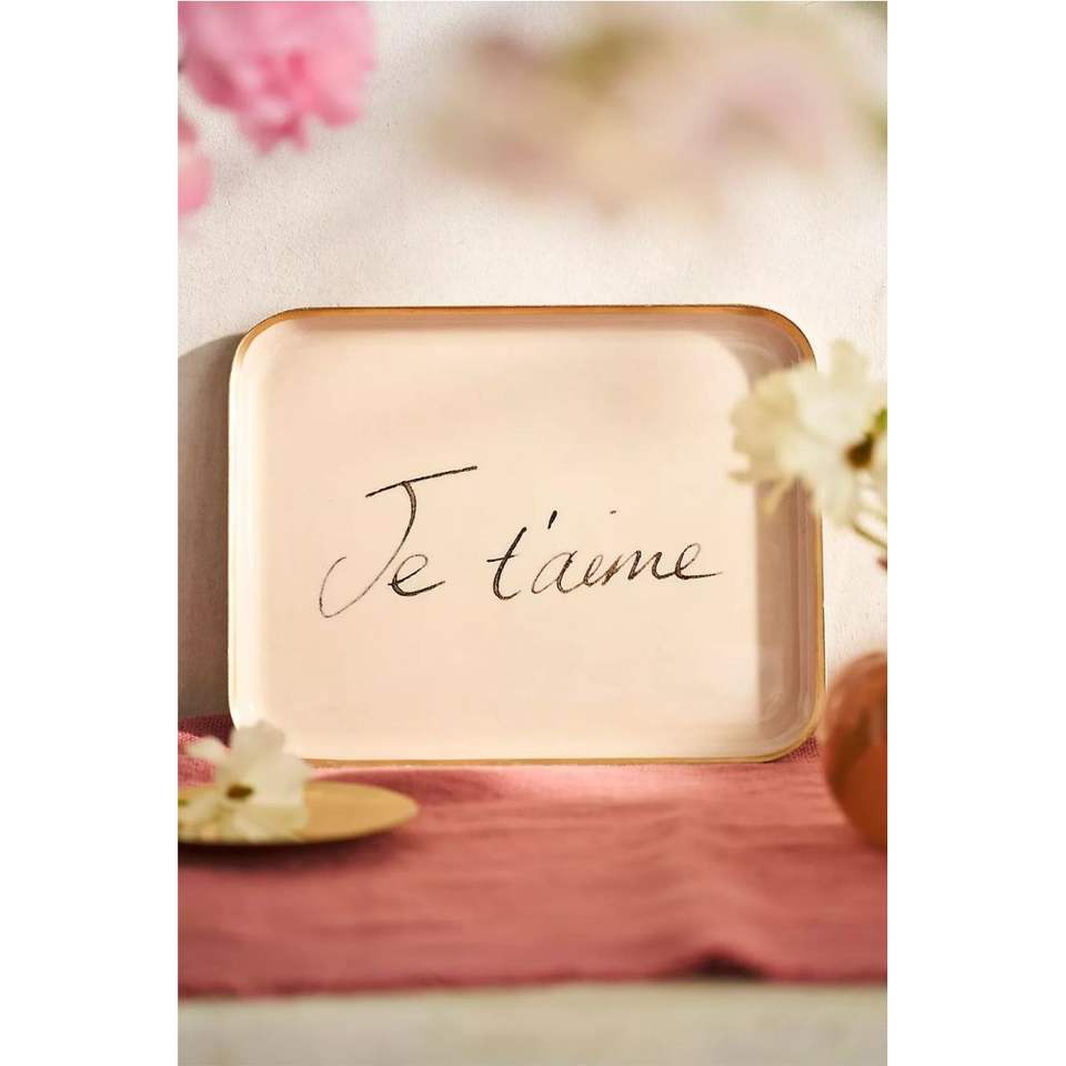 Bandeja Rectangular Metálica Hecha a Mano con Estampado de Hojas Tropicales y Borde Dorado, Decoración de Lujo para el Hogar, Plato para Mesa de Centro