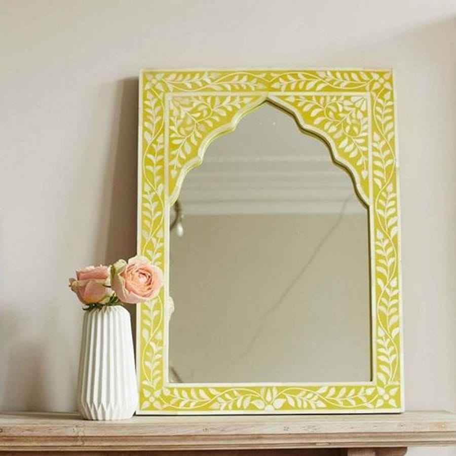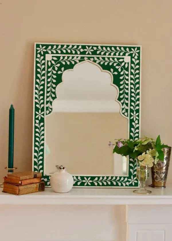 Marco de espejo rectangular hecho a mano con diseño de huesos, marco decorativo único para pared, para sala de estar o dormitorio, por Arif Handicrafts.