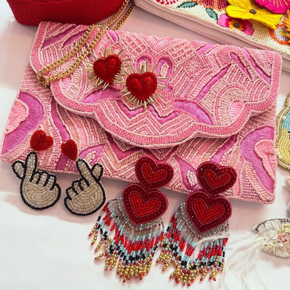 Bolso de Mano Hecho a Mano con Cuentas Rojas en Forma de Labios, Correa de Cadena, Bolso de Hombro para Mujer, Accesorio de Moda para Fiestas Nocturnas, Bolso Tipo Clutch