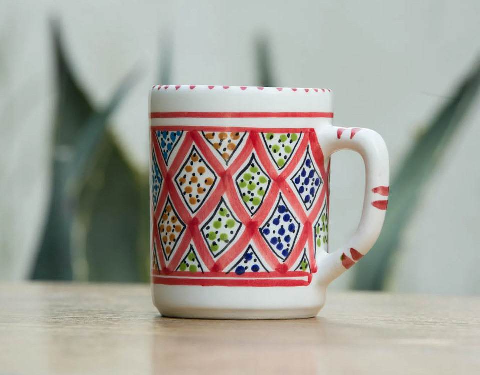 Hecho a mano rojo marroquí Fassi cerámica tazasModo