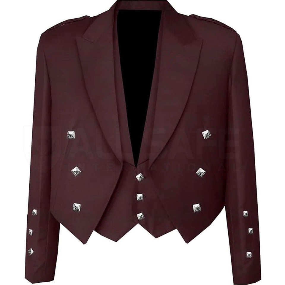 Chaqueta de Príncipe Charlie roja hecha a mano con chaleco, abrigo de falda escocesa para hombre, chaqueta de boda, chaquetas de falda escocesa modernas de lana Príncipe Charlie
