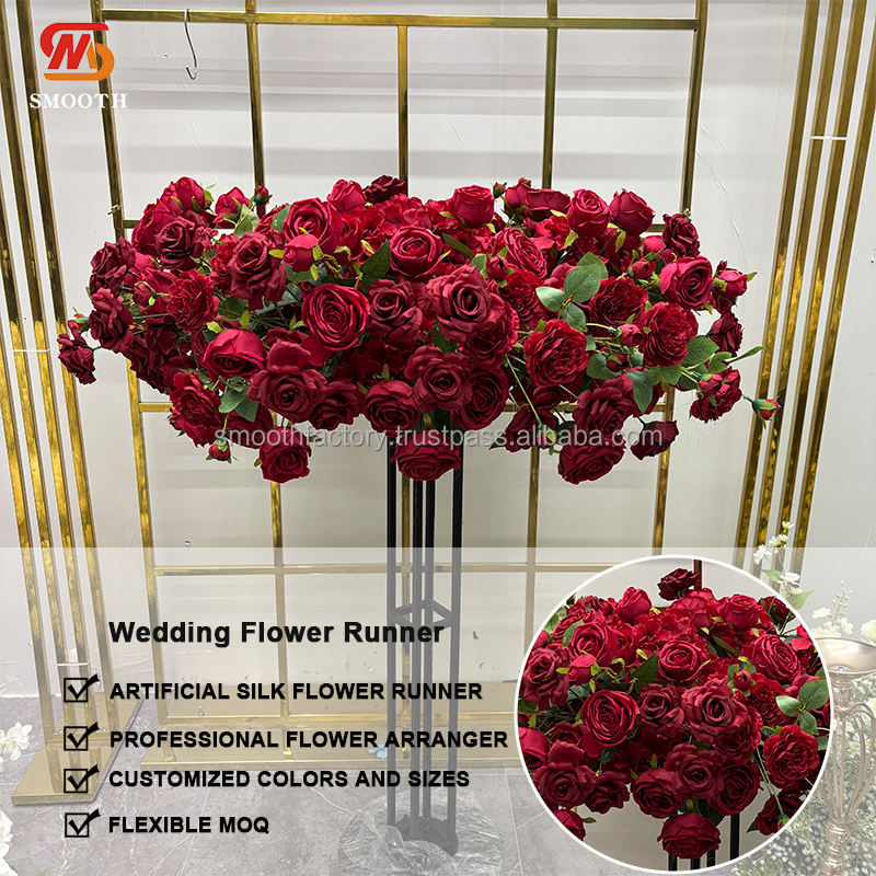 Camino de Mesa de Flores de Rosa Roja Hecho a Mano, Decoración de Pared para Bodas, Diseño Entusiasta para el Día de San Valentín, Artificial