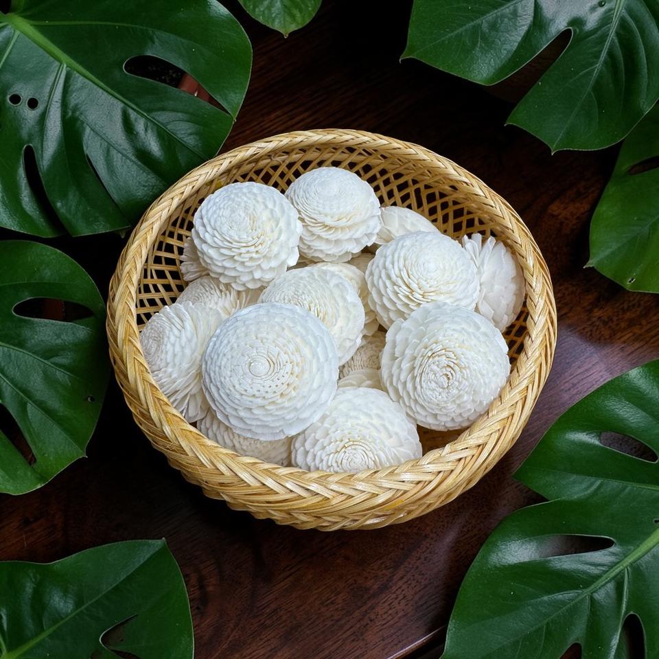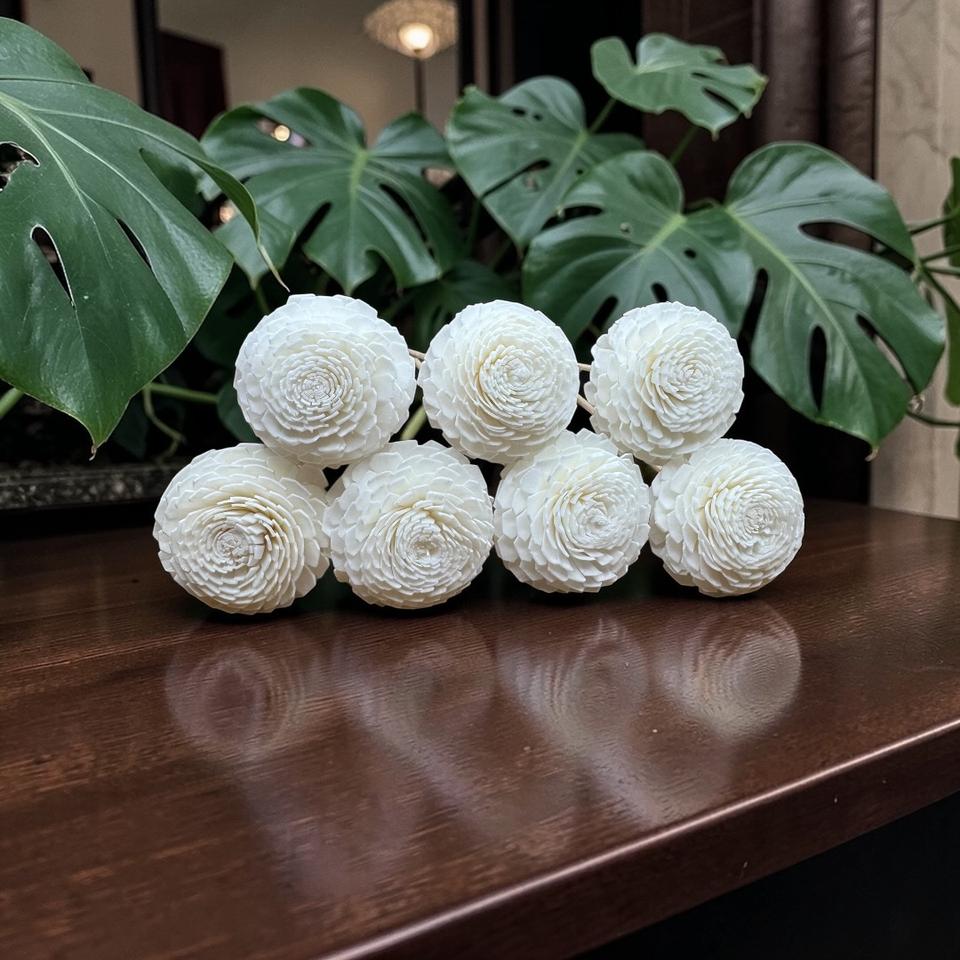Difusor de Repuesto Hecho a Mano con Accesorios de Aromaterapia, Flores de Jazmín Secas, Tamaño: 4.5 cm, Flores de Madera Sola de Tailandia
